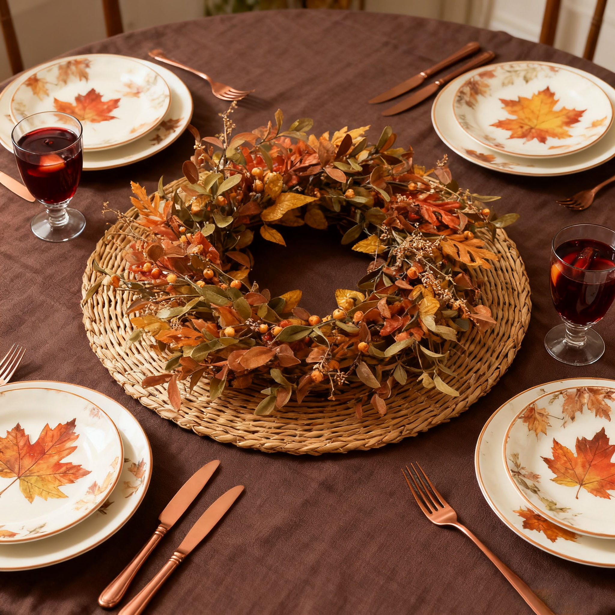 🍁Fall wreath includes a variety of accessories : Bright Oak leaves, small pair of leaves, berries, small pumpkin, multi-colored leaves, etc