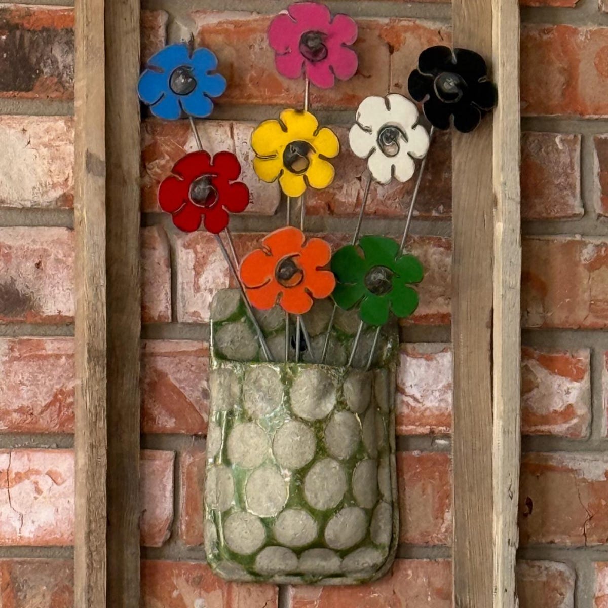 Bring a touch of rustic charm and eco-friendly beauty into your home or garden with these whimsical flowers handcrafted from recycled metal. Each one-of-a-kind bloom is cut by hand from found objects like old wheelbarrows, toolboxes, wagons, tackle boxes, and even ironing boards—giving new life to forgotten pieces of history.